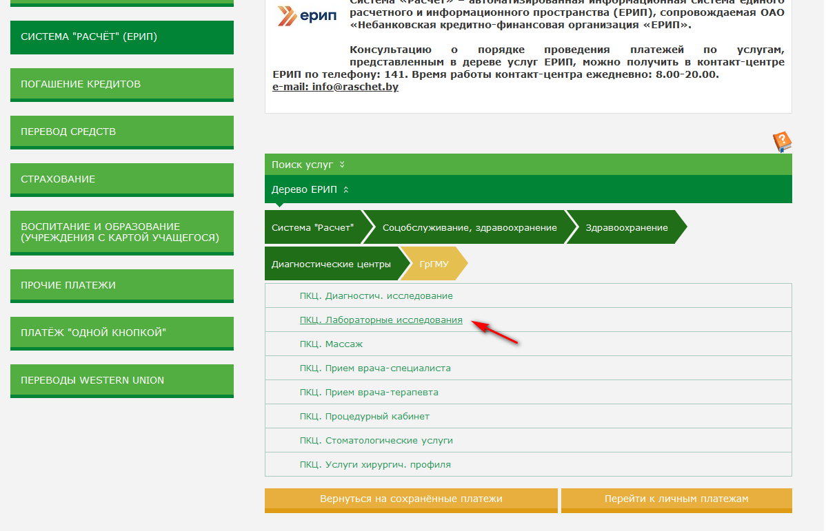 Оплату услуг, полученных в ПКЦ, можно произвести через ЕРИП: